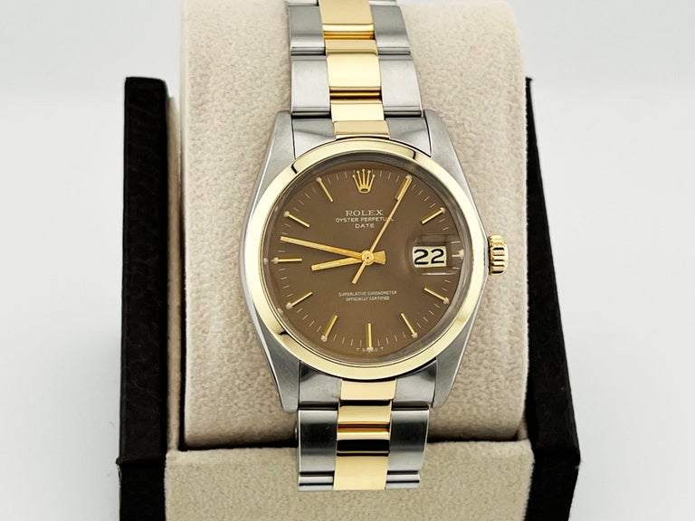 Rolex Date 1500 Brown Dial 18K Yellow Gold Stainless Steel 34mm