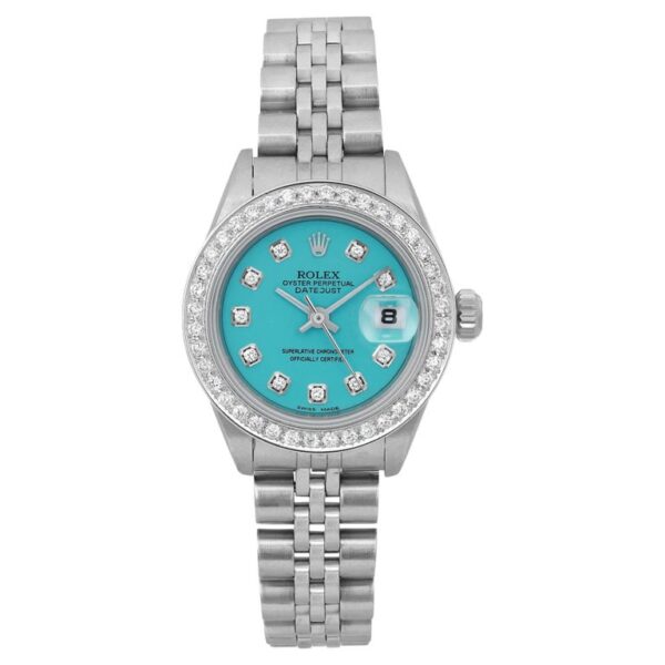 Rolex Datejust 26mm Steel Custom Turquoise Diamond Dial Bezel Ladies Watch 69174